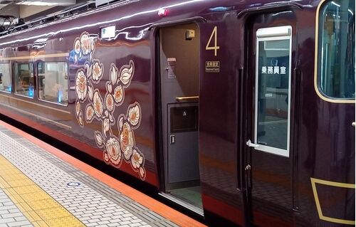 近鉄京都駅のホームから、あをによしに乗り込む。 4号車に予約が取れた。 京都では一番後ろの車両である。 改札から近いのはありがたい。 つやがあってきれいな車両である。 チケットレスで楽々予約ができた。 乗車券のみ買って入る。 ネットで変更も簡単に…